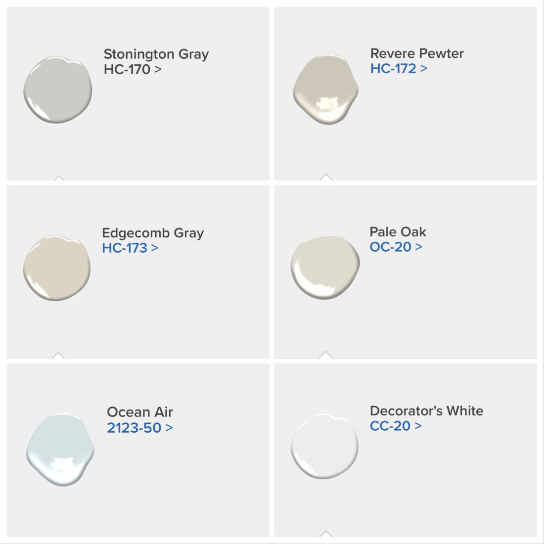 I’ve been trying to find gray and greige colors that will work with the style of the house, our existing furniture, and work with each other. I’ve been using the Benjamin Moore Color Capture app