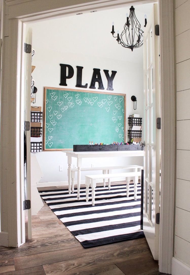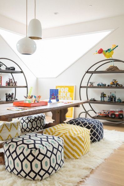 We’ll be using the bonus room that’s over the garage as a playroom/guest room. This is the room that I’m having the most trouble with. I love clean, white playrooms like these: